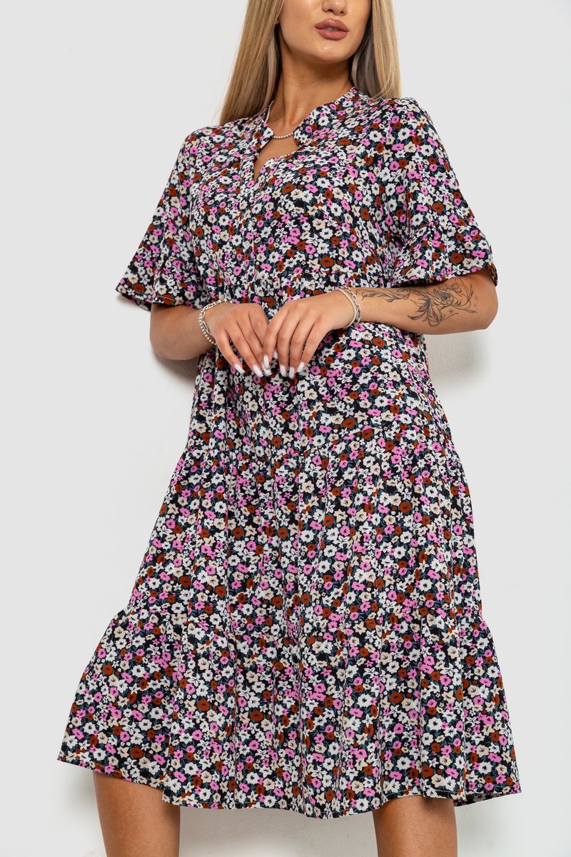 Плаття з квітковим принтом, колір чорно-рожевий, 102R5251-1 (102R5251-1)