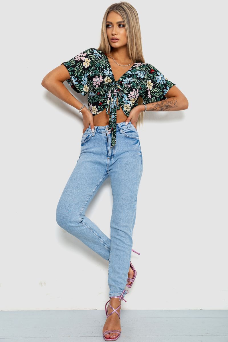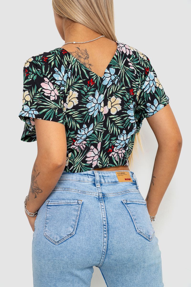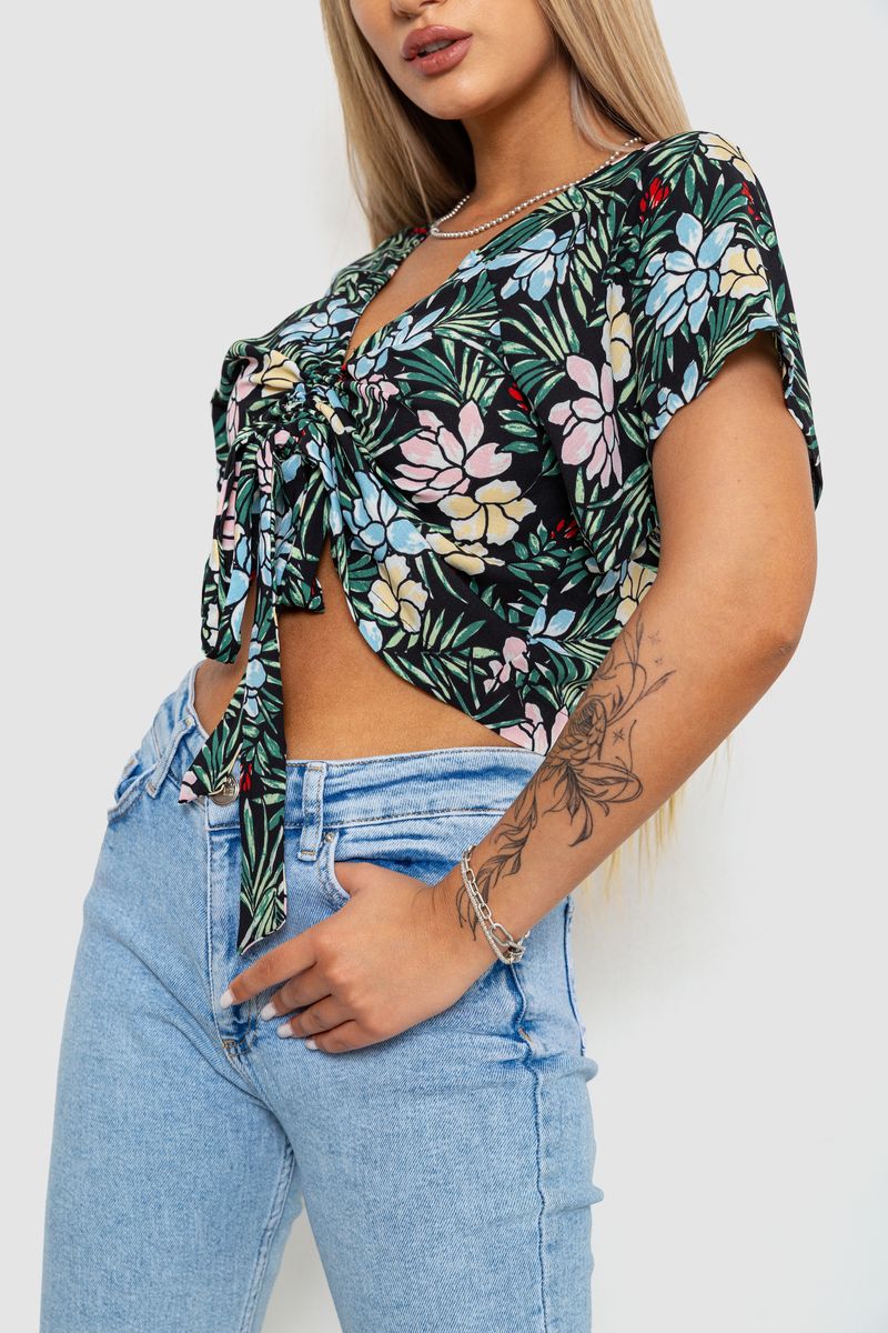 Блуза-топ з квітковим принтом, колір чорно-зелений, 244R292 (244R292)