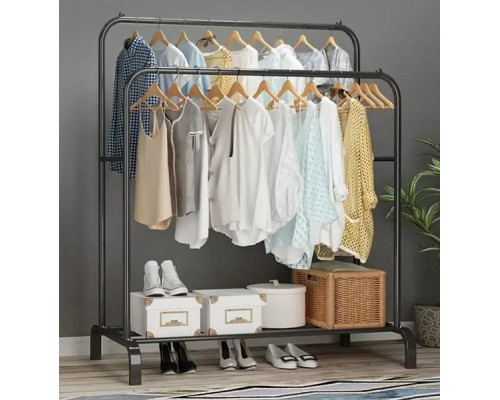 ДВОЙНАЯ СТОЙКА ВЕШАЛКА 150Х110Х54 СМ ДЛЯ ОДЕЖДЫ И ПОЛКОЙ ДЛЯ ОБУВИ BLACK (10) jmax (69f8e78a9988)