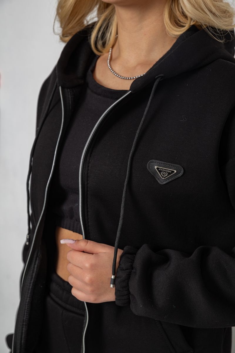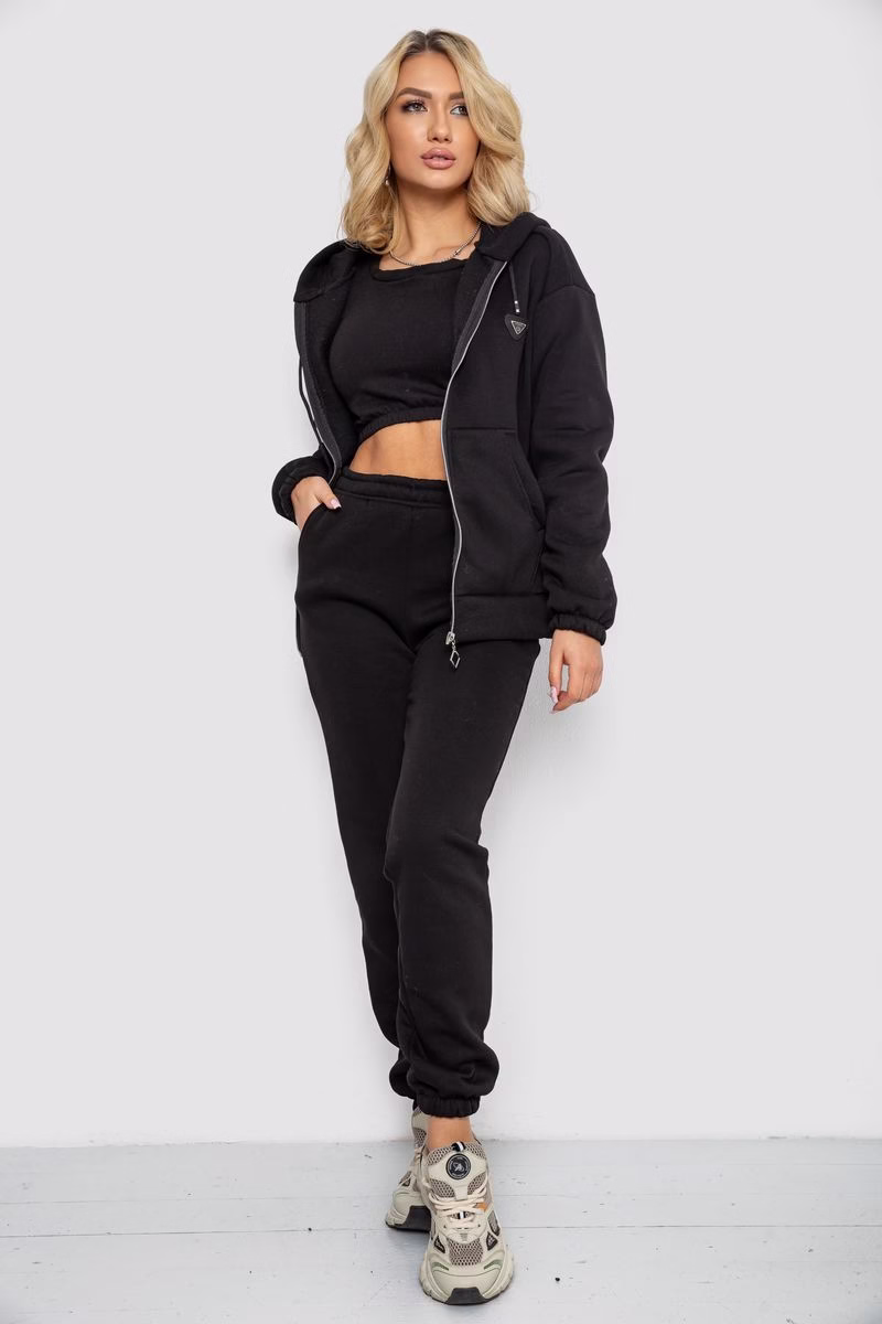 Спортивний костюм жіночий на флісі на блискавці, колір чорний, 247R1060 (247R1060)